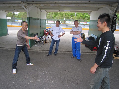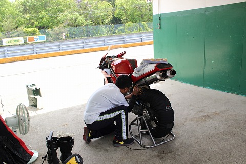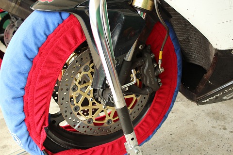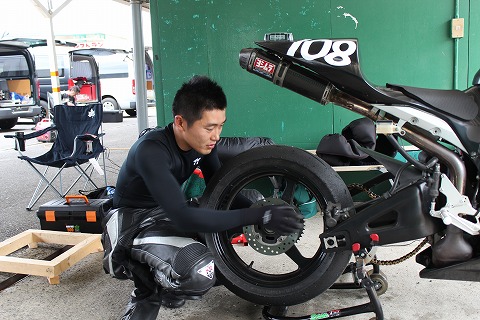15:01 タイヤ交換 ここにきて掛本くんがタイヤ交換。 今となっては公認が切れたピレリだけど、おニューに入れ替えだ。 気合い入ってる! |
