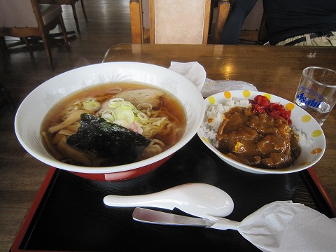 12:24 昼食 12時から30分間、サーキットは昼休みでクローズです。 午前中20分を2本走っただけで、お昼になっちゃいました。(^_^;) 昼食はサーキットの食堂で。 注文は、米沢ラーメンのセット、ミニカレー丼付き。(\1,080) 午後からも走行すると言うのに、明らかに食べ過ぎだね。(-_-;) |