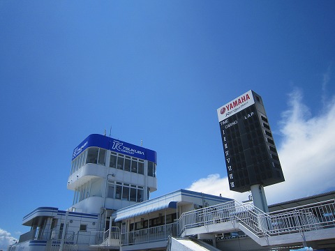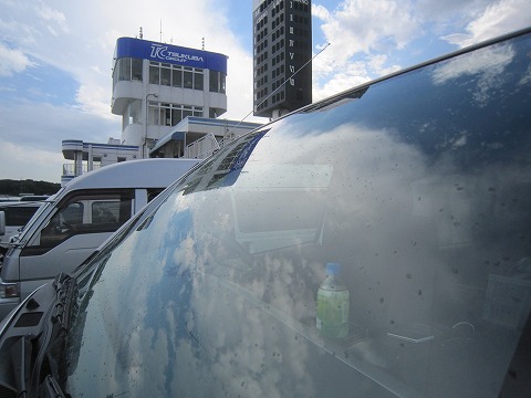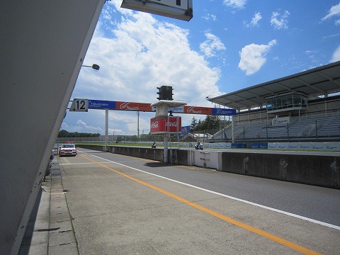 12:49 走行準備完了 走行開始1時間前、走行の準備ができました。 ピットロードから見る空も今のところ青空。 でも、遠くの方の雲が怪しい。 |