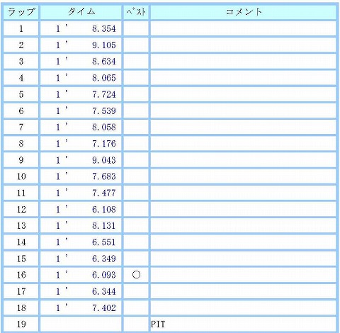 12:55 まずはエビナさん 12時55分になって、まずはエビナさんの特別スポーツ走行が開始。 エビナさんは先々週にも練習に来て、自己ベストを更新して、1分3秒台に。 今日はコンスタントに3秒台が出せるように練習するらしい。 レース前日に攻めすぎて転ばないようにね! 『それでは、行ってらっちゃい。』 |