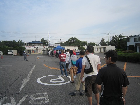 6:11 並ぶ 今日の特スポ1本目は午後の13時20分から。 特スポ走るだけだったら、2時間前の11時過ぎに来ればイイんだけど、朝早くきたのは、明日のレースのときの駐車場の場所取りのため。 レース当日トランポはインフィールドに入れないので、コース外周の駐車場を使います。 その駐車場も場所によっては、えらくパドックまで遠いので、なるべくパドックに近いところの駐車場を確保したいわけです。(特に雨なんか降っちゃうとね) 今までは、かなり遅くきていたので、場所が遠かった。 今回は、なるべくいい場所を確保しようと早くきたわけです。 駐車場の確保は、今日の午前6時15分から専用の用紙が配布されるので、それをもらって、確保した駐車スペースに貼っておきます。 で、この時間に来てみたら、用紙の配布待ちで結構な人が並んでる。 |