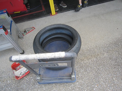9:53 タイヤを処分 レースウィーク、タイヤサービスが開いているので、前回エビスの走行会で使ったタイヤを持ってきて廃棄処分。 処分費用1本=\150也 |