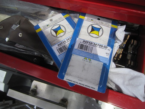 13:01 パッドをチェック 走行前にバッドを確認。 モリワキのレーシングパッドは、パッドに切り込みが無いので、使用限度が見ただけじゃわからない。 使用限度はこのCBR600RRのパッドの場合、ベースプレートの暑さも含めて”6mm”。 ノギスでチェックしたら、7.1mmほど余っているんで、まだ大丈夫だね。 以前使っていたHONDAの純正パッドは減ってくると、ブレーキの遊びが著しく増えます。 それに比べて、モリワキのパッドだとそれがほとんど感じられない。(まだ、使用限度まで使ったことが無いので、正確には言えませんが) そして、減りも純正よりも保つみたい。 値段も、変わらないので、今のところこのパッドを使っていく予定。 |