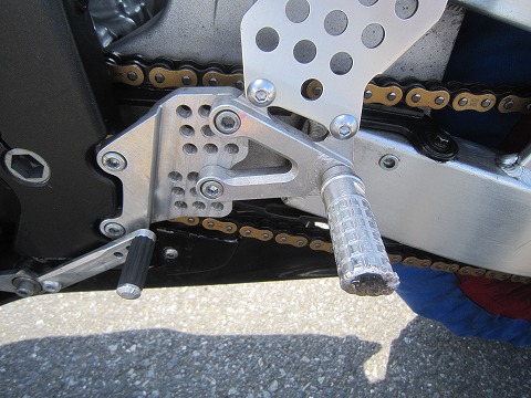 14:08 レースに向けての 1本目の走行が終わって、次の走行が3時30分から。 少し時間があるので、明日のレースに向けての準備。 で、ステップバーを新しいのと付け替えておきます。 今使ってる上の写真のステップだと、先端が丸まっていないので、車検に通らないかも。 |
