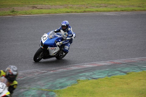 9:53 5周目ガンバって、16秒台。 6周目はドライタイヤを履いたバイクに引っかかって19秒台に逆戻り。 2〜3台ドライタイヤで予選に出ているバイクが居たんだけど、当然コーナーは遅い。 けど、アウトから抜くの怖いんだよね。 滑って飛んでくるんじゃないかと想像して。 7、8周目再びペースを上げて15秒台。 9周目、再びドライタイヤのバイクに引っかかる。 引っかかっているところをアウトから抜いて行くライダーもいるんだけど、怖くてできない。 歳をとると言うことは、臆病になること言うことなのか。 コースもだんだん乾いて、最終コーナーライン上はドライになってきました。 そして、ペースを上げて10周目11周目13秒台。 もっとペースを上げなきゃ! と思ったところで、チェッカー。 |