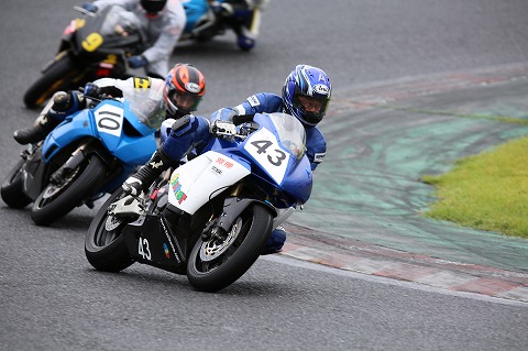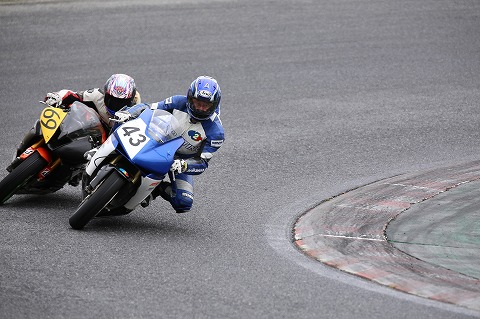 9:39 怖々 予選が始まる頃にはほとんど止みましたが、ウェットコンディションの中コースイン。 オフィシャルがウェットコンディションの中コースイン直後の混乱を避けるためかなりの間隔を開けてコースインさせているため、コースを1周してきた時点で、コースインしてきたバイクと混走状態に。 久しぶりに走るウェットコンディション、レインタイヤは履いていますが、2シーズン落ちのユーズド。 ちゃんとグリップするのか、恐る恐るバイクを寝かしながらの走行になっちゃいます。 それ以上に、自分自身は去年1年ウェットのサーキットを走った記憶がないので、2年ぶり以上。 緊張で体が硬くなってます。(-_-;) |
