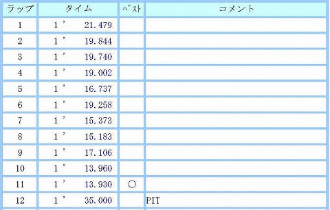 予選結果 予選結果がリリースされました。 予選22番手。 公式タイム1分13秒939。 たぶん自己ワースト。 お恥ずかしい限りですが、これが今の自分の実力だ! エントリーが少なくて予選落ちしないのをいいことに、緊迫感が無い証拠だよね。 |