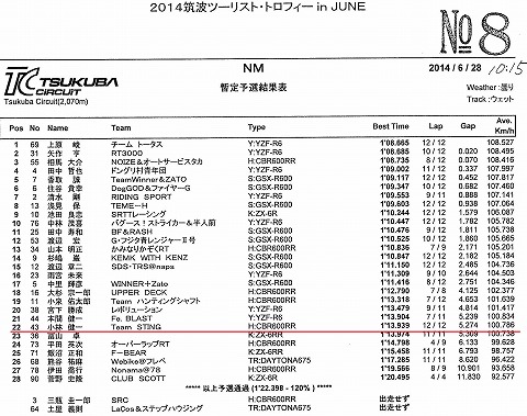| 2014年6月28日(土) 筑波ツーリスト・トロフィ in JUNE(予選) | |||