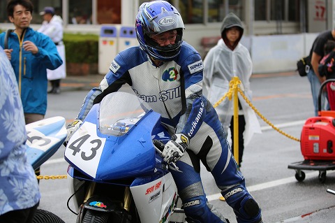 8:01 車検場へ 今回出場するNMクラス(ノーマル・ミドル)の車検は8時15分から。 レインタイヤに交換して、準備ができたところで、車検場に向かいます。 カッパを着て、ヘルメットや皮つなぎを運んでくれているのは、今日ヘルパー&カメラマンで来てくれたITOHさん。 『助かります! よろしくお願いします!』 |