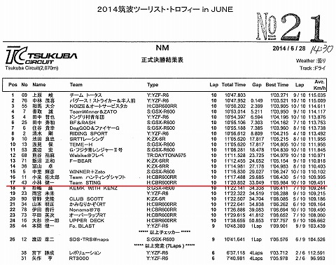 | 2014年6月28日(土) 筑波ツーリスト・トロフィ in JUNE(決勝) | |||