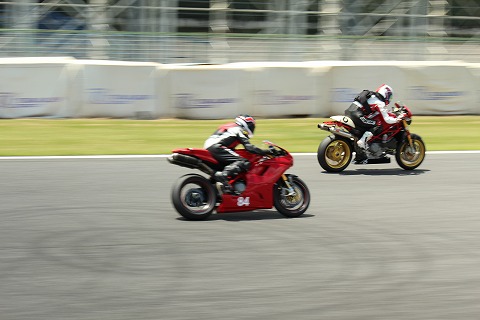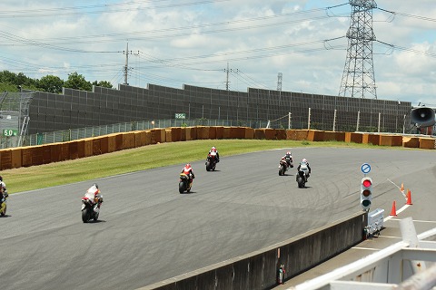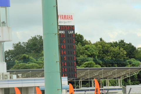 12:29 ちょっと出遅れ #84のエビナさんはスタートちょっと出遅れ。 (金曜日にスタート練習したのにね) 逆に予選6番手2列目から絶妙のスタートした#6の選手にホールショットを奪われてしまいました。 |