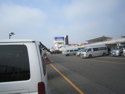 7:26 流石、平日 1コーナー下のトンネルをくぐりインフィールドに入ると、平日と言うこともあり、パドックは比較的空いています。 ピットも入れないことは無さそうですが、狭くなるので、いつものS字裏にハイエースを駐めて陣取ることにします。 雨さえ降らなければ、広くてコースインゲートにも近いので、こっちの方が好みかも。 途中でセッティングを変更するためにピットインとかもしないし・・・。 |