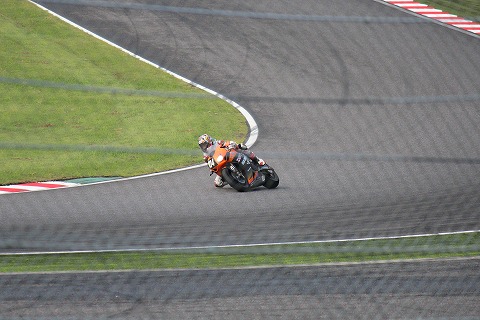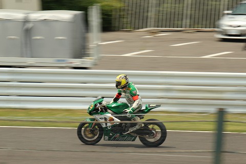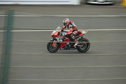 15:40 S字方面へ ちょっと遅めの昼食を食べた後は、1コーナーからS字方面へ。 ファインダーをのぞいていると、#104 TOHO RACING は國川くんがライディング中。 コンディションがコロコロ変わる中、ドライ路面をレインタイヤで走行中。 走りにくそうだ。 次のライダー交代のタイミングではドライタイヤに交換だ。 |