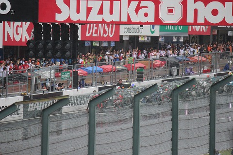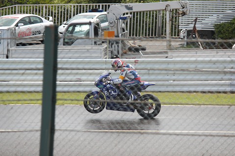 11:43 土砂降り 赤旗でスタート、ディレイ告げられしばらくすると自分がいる東コースにも大粒の雨が落ちてきて、土砂降りに。 とりあえず、雨がしのげるところまで逃げます。(笑) 結局、仕切り直し。 レースは1時間5分遅れて12時35分スタートになりました。 なんで、1時間と5分? この5分の意味がわかりませんが、レギュレーションでなんかあるんでしょう。 で、8耐だから、レース終了も1時間5分遅れて、8時35分? と思いきや、ゴールは通常の8耐と同じ7時30分と言うことで、8耐じゃなくて6時間55分耐久になっちゃいました。 8時間じゃない8耐って、なんかしまらないね。(笑) |