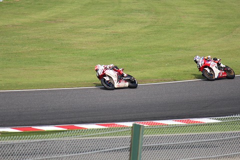 18:01 FMラジオを 最終コーナーを立ち上がるマシン達。 アウト側から抜いて行くのは、國川選手だね。 レース観戦していると、場内は実況中継はしているんだけど、目の前をバイクが通過していくと排気音でなかなか聞き取れない。 場内で実況をFMで流しているんで、レース観戦をするならFMラジオを持ってくるべきだったね。 毎年思うんだけど、一年経つと忘れちゃう。 今回、ここに書いておけば、来年は忘れないと思う。 (その前に来年も来るかどうかが、疑問だが・・・。) |