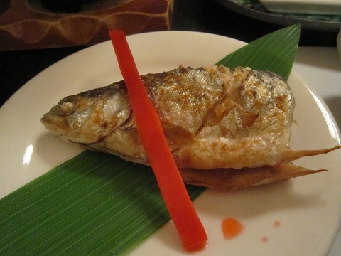19:14 十和田湖と言えば 十和田湖と言えば、カルデラ湖。 元々十和田湖に魚は生息していなかったらしく、放流によって住むようになった魚の代表格がこのヒメマスとのこと。 100年以上前の1902年に移植がスタートしたらしい。 さて、テーブルに乗ったこのヒメマス、半身でちょっと寂しいが、自分のはお頭つきなのでまだ許せるとして、嫁さんのはシッポ側と寂しさ倍増。(笑) ヒメマスは、サケ科の魚なので、味はシャケに似ている。 が、普段食卓に並ぶ塩鮭と比して、脂ののりは少なくてさっぱりしているね。 |