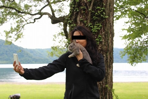 嫁さんは自分のスマホでらびちゃんと一緒に自撮り。