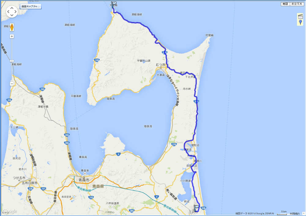 | 尻屋崎〜大間崎までの走行距離 69.1 km (途中で道を間違えたけどね) | |