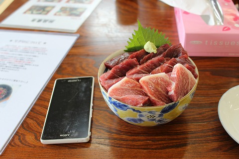 13:57 まぐろだけ丼 しばらくしてマグロ丼が運ばれてきました。 ドンブリは小さめですが、マグロはてんこ盛り。 (^_^)v さっそく、『いただきます!』 正直書きます。 マグロって、結構当たり外れが多いんですよね。 で、今回出てきたマグロは当たりじゃない。 (-_-;) 時期もあるんだろうけど、昨晩三沢で食べたトロの方が断然旨かった。 まあ、”生もの”なので、そう言うこともあるよね。 いつもこのレベルの品を提供しているとは思わないけど、やっぱり無条件に美味しかったら、テーブルの上に”能書き”は置かないよね。 同じように感じて文句を言う人がいるから、”能書き”が置いてあるんだろうね。と推測する。 |