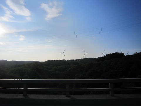 16:43 六カ所村は そして、山の上には風力発電の設備。 六カ所村には、風力発電の会社が3社、合計77基の風力発電機が設置されているそうです。 六カ所村には原子力関連施設があったり、石油の備蓄基地があったり、風力発電の設備があったりで、村の財政は裕福みたいです。 そんな、こんな施設を遠くに眺めながら、六カ所村を通過していきます。 |