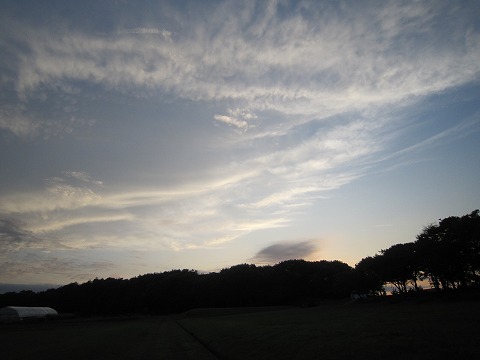 17:52 日が暮れる 宿に戻る前にちょっと寄り道・ちょっと休憩。 関東より少し早めに秋が訪れる三沢。 8月の最終日で、雲が高く秋の空の気配。 ゆっくりと日が暮れていきます。 |