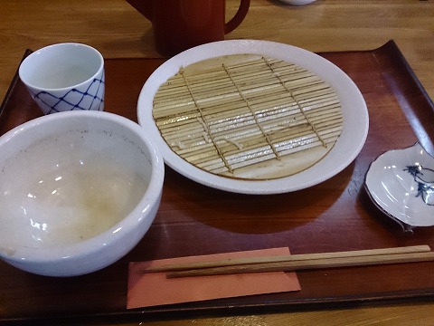 11:55 田酒を求めようとした結果 青森県の日本酒と言えば、評価、知名度共にぶっちぎりな”田酒”。 せっかく青森県を訪れたので、お土産に買って帰ろうと思った訳です。 この田酒を販売(小売り)しているお店を探すと、青森県内では4店舗のみ、運良く三沢に1店舗ありました。 その三沢にあるお店がこの松田屋酒店さんだったのです。 別の休日、田酒を購入しようと松田屋酒店さんを訪れてみると、田酒はインターネット販売のみで、残念ながら店頭販売は行っていないとのこと。 その時に、隣に蕎麦屋さんが併設されているのを知りました。 後からネットを見てみると、酒屋さんの店主が蕎麦を打っているとのこと、しかも女性です。 『これは、訪れてみんといかんとです。』 と言うことで、仕事も後半、たまたま時間が取れたので、訪れてみることにしました。 訪れたのは、平日水曜日の昼ちょっと前。 さっそく、入店! |