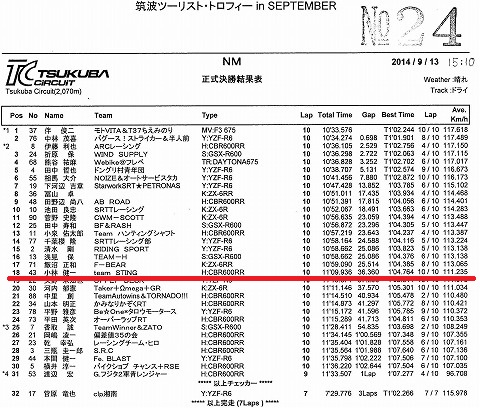 13:45 2台抜いて 前の2台がなかなか抜けなくて、 結局、抜けたのは前のライダーがブレーキングでミスをして、イン側に付けなかったときに抜かせていただきました。 2台とも。 |