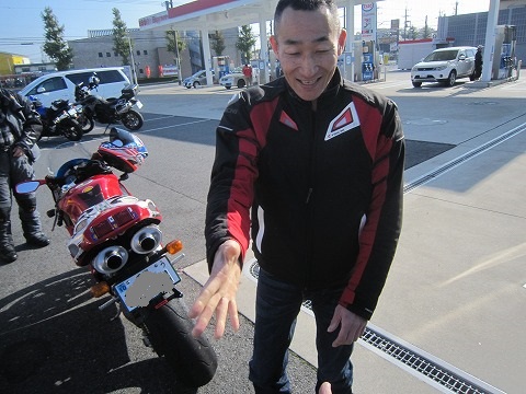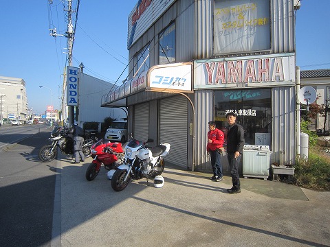 9:04 集合 今日はK2Y主催のツーリングです。 8時にお店を出発すると言うので、1時間前に来てリヤタイヤを交換。 リヤタイヤを交換していると、コシドラちゃんが登場、続いてドカの岩井さんが到着。 K2Yからはアイスエイジさん含めて4台で出発します。 K2Yのツーリングに参加するのは、今年の元旦ツーリング以来。 途中何回かお誘いを受けたのですが、時間の調整が付かなかったりで欠席、久々に参加することになりました。 |