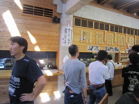 12:17 繁盛してます 店内に入ると、『混んでるぞ!』 セルフで、カウンターに注文の列が・・・・。 たまたま空いていた座敷に場所を確保。 以前訪れた2011年のときは、東日本大震災から8ヶ月あまりとまだ福島原発の問題などもあり人が遠のいていたこともあってか、ガラガラでした。 でも、今日はほぼお客さんに埋め尽くされています。 注文しに行くと、店員さんが『混んでいるので、30分位待ちます!』 とのこと。 『待ちますよ!』 (^_^)v |