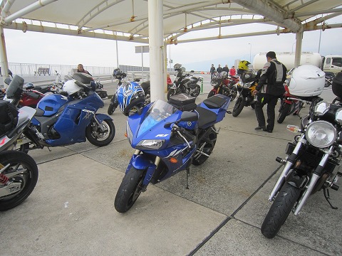 8:16 西湘パーキングに到着 吉牛を食べた後、ふたたび国道134号線で西走、相模川を越えて国道1号線のバイパスになる西湘バイパスに上がり待ち合わせ場所の西湘パーキングに到着。 出発からちょうど1時間ですね。 今日は今週末も台風19号が関東地方に接近する予報が出ていることもあってかクルマは少なめ。 国道134号線も片側2車線化工事が進んでスムーズに流れるようになったみたいですね。 ここで他のメンバーと合流。 とは言っても、今日は自分と2人だけ。(笑) 今回のツーリングは本当は先週の予定でしたが、台風のため今週に変更しました。 今週は3連休と言うこともあって、他の参加予定者は調整が付かなかったみたいです。 結局、予定していた7人が2人に。 (^_^;) |