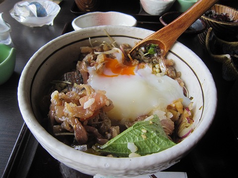 11:13 温泉たまごを添加 醤油ダレで2口ほど食べたら、次は付け合わせの”温泉たまご”を入れて。 これも、混ぜちゃう。 温泉たまごを入れると、ちょっと角のある醤油ダレの味がマイルドになって、旨旨です。 (^_^)v |