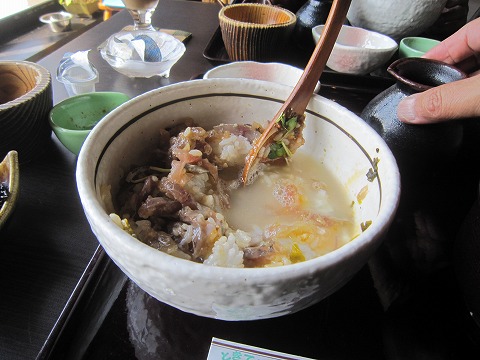 11:18 濁る せっかくの澄んだだし汁ですが、たまごが入っているので、かき混ぜると濁っちゃう。 だし汁とたまごが混ざると、味がちょっと惚けちゃいますね。 十分美味しいけど。 だし汁好きだったら、温泉たまごは混ぜずに別に食べちゃうことをお薦め。かな。 |