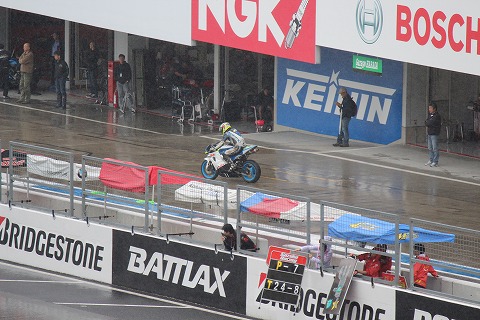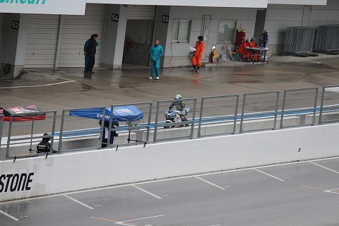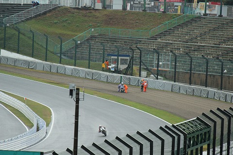 9:53 修理完了 バイクの応急修理も終わったようです。 赤旗による中断ももう少しで、解除になり予選が再開されます。 |