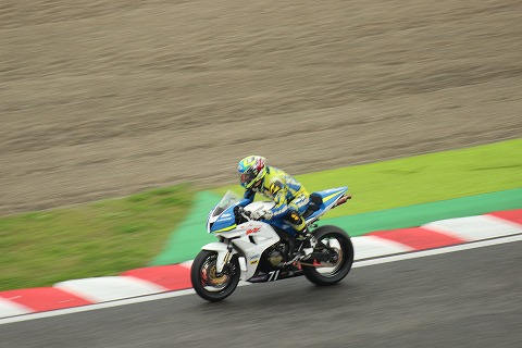 10:41 12位 最終ラップ、1最終コーナーを立ち上がる#71 新庄選手。 28番手からスタートし、15人抜きをして、12位でフィニッシュしました。 優勝は、#3の大崎選手。 2位#6AKENO SPEEDの稲垣選手。 3位#76の伊藤勇樹選手でした。 1位〜5位までがYAMAHAのR6、6位にKAWASAKIのZX-6R、7位に#20 HONDAの中山選手が入りました。 直線スピードに勝るR6は鈴鹿でも速いね。 |