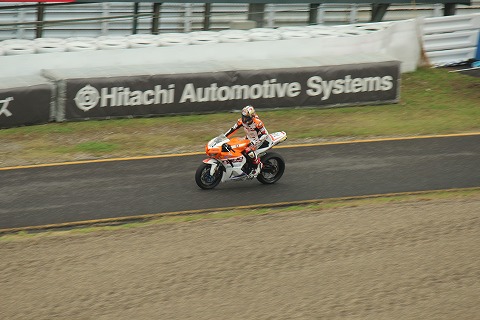 10:23 新庄選手は 昨日の予選で転倒し、28番グリッドからスタートした#71の新庄選手。 メカの清水さんの修理が報われてか、1周目20位、2周目19位、3周目18位と着実に順位を上げていきます。 新庄選手にもガンバってほしいなぁ。 |
