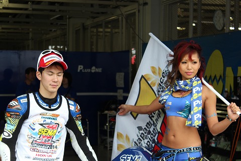13:27 J-GP3 チャンピオン 先ほどのレースでJ-GP3の2年連続チャンピオンを決めた山田誓己選手。 「ありゃま。 まばたきしてた。」 なかなかのハンサム男で、すでに人気ものだけど、早く上のクラスに上がってきて活躍して欲しいなぁ。 |