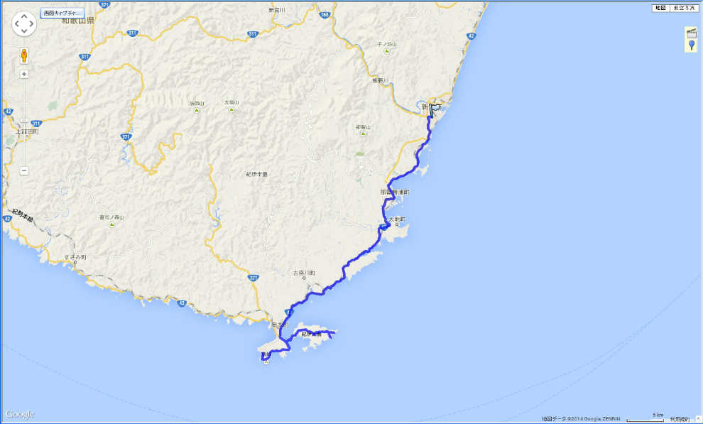 | 新宮市〜潮岬まで (寄り道をして、71.7km) | |