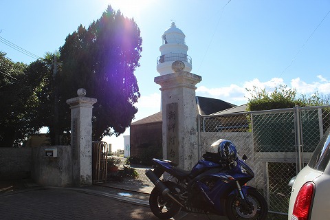 13:49 潮岬灯台 潮岬灯台に到着! 灯台の入口は狭くて、バイクが4〜5台駐められるくらいのスペースかな。 10台以上のマスツーリングで来たら、駐める場所が無くてパニックになるね。(笑) ところで、よく調べて来なかったんですが、”本州最南端の碑”はどこにあるんでしょうか? 灯台の敷地の中には無いみたいです。 (入場すると有料だから、)入口で写真を撮って、最南端の碑を探すことにします。 |