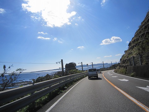 11:50 潮岬まで 松阪からスタートした和歌山ツーリング、新宮市に入ったところで和歌山県初のブランチも食べましたので、ツーリングを続けます。 目的地の潮岬までは、もう少し50kmほどの距離、1時間ほどで着きますかね。 |