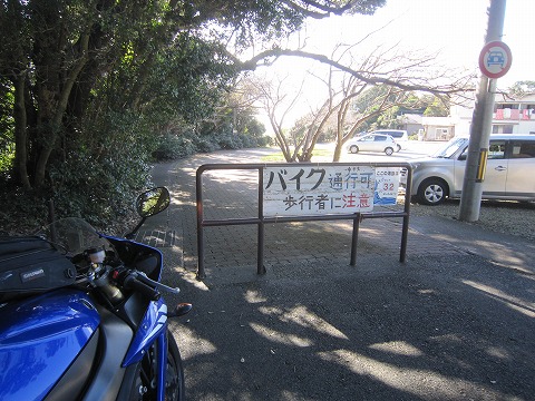 13:48 バイクで くしもと大橋から県道41号線を時計廻り。 潮岬灯台の入口にある駐車場に到着しました。 駐車場から灯台につながる道をみると、”バイク通行可”。 ありがたいですね。 バイクで行けるみたいなので、脇をすり抜けて行ってみることにします。(^_^)v |