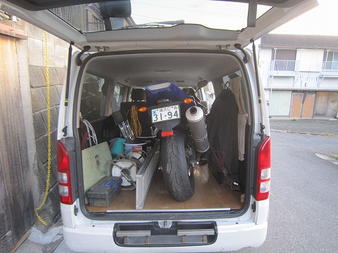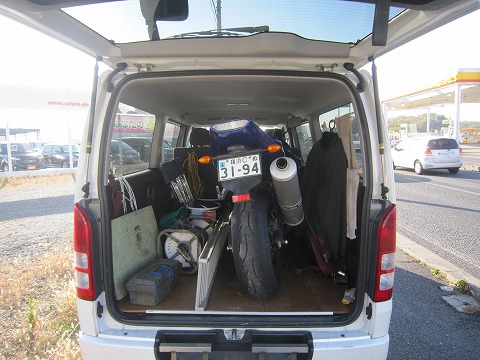 6:41 それほど レポの更新が滞って、1ヶ月近く遅れてのアップです。(-_-;) 例年、勤労感謝の日は1年間仕事をガンバったご褒美として、K2Y主催で泊まりでツーリングに行っています。 今年は、「それほどガンバっていない。」と言うわけではありませんが、何となくリズムを崩されて、日帰りツーリングになりました。 今回の日帰りツーリングは千葉県内です。 まずはハイエースにR1を積み込んで、集合場所のK2Yに向かいます。 |