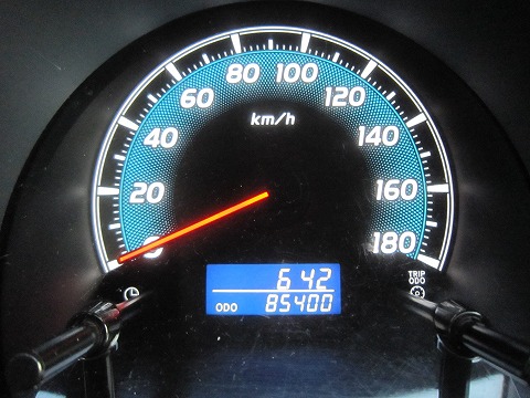 6:42 待ち合わせ K2Yの集合時間は9時。 今日のツーリングは、地元のMAOHさんも誘ったので、K2Yに行く前に東関道の湾岸幕張パーキングで待ち合わせることに。 湾岸幕張での待ち合わせ時間は8時15分頃にしました。 6時半には自宅を出発する予定でしたが、ちょっと遅れてしまいましたね。 それでは、急いで出発することにします。 走り始めの距離計は、きりが良くて 85,400 km です。 |