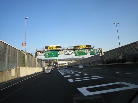 7:29 C1に 横横から首都高湾岸線に入り、大井本線料金所を通過しました。 先ほどから、交通情報盤には”葛西インター出口渋滞中”のインフォメーション。 休日のディズニーランド渋滞ですね。 K2Yに行くのに、葛西インター脇を通過するのが通常ルートですが、渋滞に巻き込まれたくないので、大井JCTから迂回して、首都高C1(都心環状線)に向かうことにします。 |