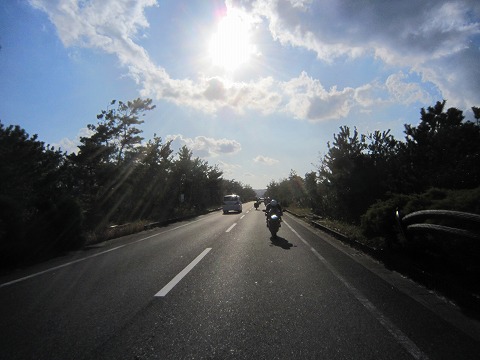 13:05 ついウトウト お食事処 松大丸を出発して、外房の海を右手に見ながら北上。 今日は天気が良くて、11月にしては暖かく、食後にのんびり走るとついウトウトと居眠り・・・・・。 なんてことはなくて、まさにツーリング日和だね。 |