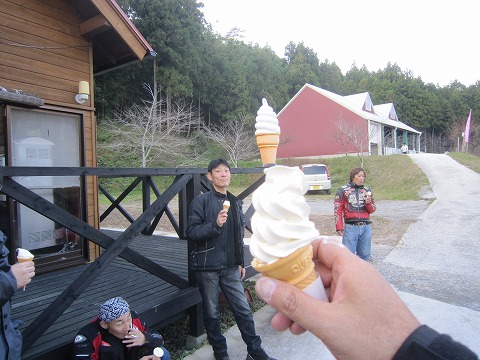 14:12 想定外 負けるのは、想定外だった。(-_-;) なので、財布はバイクに置いたままだった。 バイクに財布を取りに行ってくると言って、そのままトンズラすれば良かった。(爆) 1時間も経っていない前にジュースジャンをしたので、みんなそれほど食べたくなかったハズなのに(自分もそうだ)、みんな満足そうだ。 右に傾いて落っこちそうなソフトクリームが、自分の気持ちを表してくれている。 |