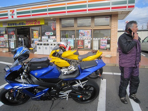 9:17 準備 R1を下ろして、暖機。 そして、ツーリングの服に着替えたら、向かいのshellのスタンドに行って、ガソリンを給油します。 なんて準備をしていると、アイスエイジさんご到着。 到着の写真がありませんが、 『明けましておめでとうございます。 今年もよろしくお願いします!』 |