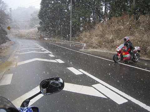 13:46 K2Yに帰着 千葉市内で岩井さんと別れた後、アイスエイジさんと2台でK2Yに戻ってきました。 『晴れてるじゃん!』 (>_<) まあ、冬のこの時期に毎年ツーリングしていたら、雪に降られることもあるよね。 雪が降ったのは2008年の元旦ツーリング以来7年ぶりだったね。 |
