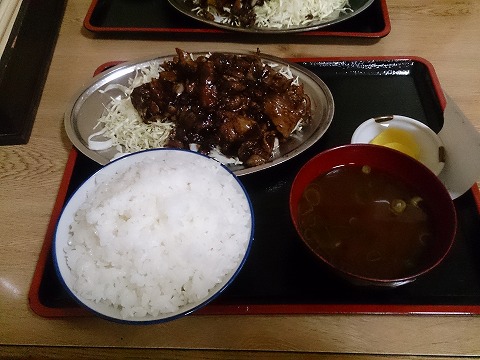 2月13日(金) 川勝 四日市での仕事場の近くにあった食堂。 お昼近くになると、平日にもかかわらずたくさんのお客さんが集まり、駐車場は満車、店の外までお客さんが待っている状態になります。 営業しているのは平日の11時〜14時。(夜はやっていません) と強気。 『これは1回食べてみんといかん!』と、昼休みを早めに取って訪店。 のれんには、”御食事処”とありますが、置いてあるのは写真にある焼肉定食のみ。(ご飯なしの単品もあり) 並盛り(200g)定食で¥1,130。 味付けは、トンテキを食べた後から思えば、基本トンテキと同じウースターソース系。 肉はトンテキの肩ロースに対して、こちらは豚バラ肉。 ゴロゴロ入っているニンニクが効いて美味いけど、かなりオイリー。(^_^;) たまに食べるのが宜しいかと。 (^_^;) |