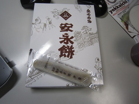 三重県のお土産 四日市のお土産が見つかりませんでした。 三重のお土産と言うと、お伊勢さんの”赤福”が有名ですが、鈴鹿に行くたびに買ってたりして、少々マンネリ。 今回、帰り道の東名阪自動車道の大山田パーキングエリアで、偶然お土産を発見。 ”桑名名物 安永餅”。 だそうで。 自宅に戻ってから、1つ食べてみたらこれが意外に美味しかった。 珍しいし、次回からのお土産はこれにしよう。 ネットで調べてみたら、伊勢湾岸自動車道の”湾岸長島パーキングエリア”でも売っているらしい。 |