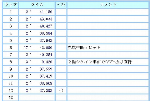 12周回ったところで、チェッカーが振られて、2本目の走行は終了です。